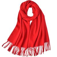 恒源祥纯羊毛围巾女士春秋季加大红色百搭保暖披肩两用长款加厚男