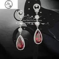 JiMi超仙长款紫色锆石简约水滴耳钉水晶红色新娘礼服结婚耳环耳夹款女