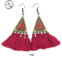 JiMi红色中国少数民族风流苏耳环女气质长款云南耳饰夸张银银耳夹耳钉