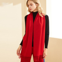 恒源祥纯羊毛围巾女士春秋季加大红色百搭保暖披肩两用长款加厚男