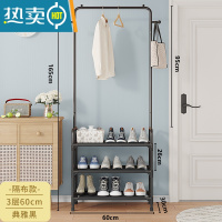 敬平晾衣架落地衣帽架多功能多层收纳架卧室内学生宿舍收纳置物一体架 3层-时尚黑