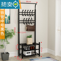 敬平晾衣架落地家用门厅挂衣架卧室简易鞋架室内收纳凉晒衣服衣帽架子 大号-黑色[加厚] 大
