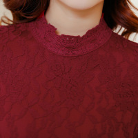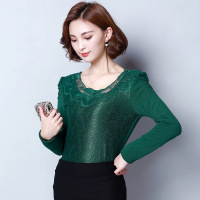 2018秋冬新款韩版加绒加厚蕾丝打底衫女长袖大码钉珠镶钻上衣小衫