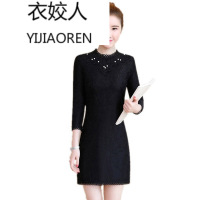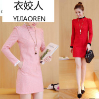 韩妃图(HANFEITU)2017冬季加厚冬裙打底裙女中长款内搭秋冬新款韩版蕾丝加绒连衣裙