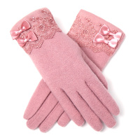 2017秋冬新款双层加绒羊毛手套女士韩版蝴蝶结保暖触屏分指手套