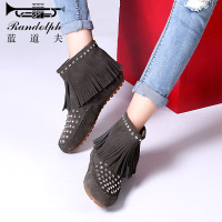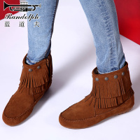 蓝道夫短靴春季欧美休闲铆钉牛皮流苏靴豆豆底平底学生女靴AR4D0420