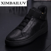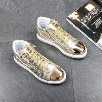 欧美高帮男鞋系带透气圆头休闲鞋韩版潮流金色男靴时尚高邦板鞋潮