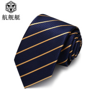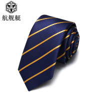 深蓝色金色条纹领带男商务正装7cm韩版窄领带小礼盒装潮