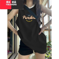 YIBUSHENG甜酷宽松背心t恤女生季玫红色字母印花中长款无袖吊带上衣