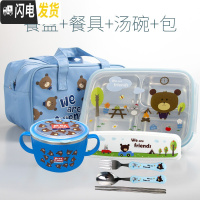 三维工匠韩国304不锈钢饭盒便当盒学生带盖餐盘卡扣分格餐盒四格儿童饭盒 卡扣盖四格1.6蓝色5件套