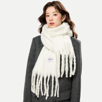 啄木鸟雾霾蓝色围巾女2024新款纯色加厚保暖围脖男毛绒披肩秋冬季