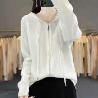 韩版女装安迪绒帽衫双拉链连帽毛衣秋冬新款外套针织衫开衫