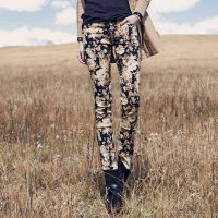 声缎2016春装新款女装 印花显瘦高弹力小脚打底裤 女5174