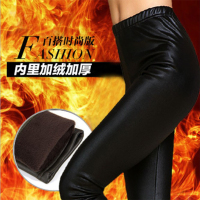 秋冬新款双层加绒加厚仿皮打底裤 弹力大码保暖裤 小脚显瘦皮裤女
