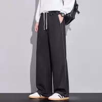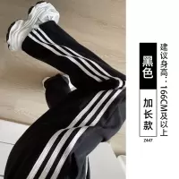 美式条纹运动裤女秋季直筒卫裤小个子初中生束脚宽松阔腿休闲裤子