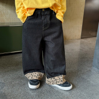 童酷男童秋款复古豹纹拼接中小童长裤洋气百搭宽松儿童牛仔裤