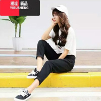 YIBUSHENG牛仔裤女黑白色破洞九分裤休闲裤哈伦裤小脚铅笔打底裤学生阔腿裤