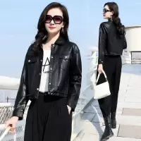 免费试穿 真皮皮衣女短款绵羊皮2024春秋装新款皮夹克矮个子韩版修身小外套潮冬装新款机车复古短上衣多款皮衣小外套