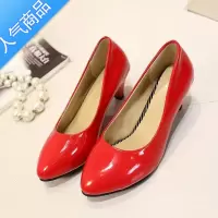 SUNTEK春夏季新款尖头单鞋高跟鞋中跟浅口漆皮细跟女鞋工作鞋红色婚鞋女