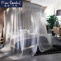 皮尔卡丹伸缩蚊帐U型三开落地支架加密宫廷1.5米1.8m床双人家用_1