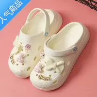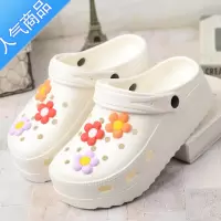 SUNTEK厚底洞洞鞋女松糕底外穿防滑少女心白色护士包头半拖鞋两穿沙滩鞋