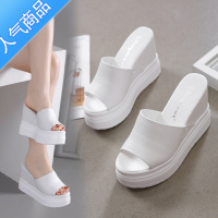 SUNTEK10M坡跟拖鞋女夏季外穿2023新款韩版防水台松糕厚底白色鱼嘴凉鞋