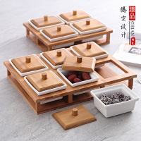 日式分格竹木水果盘糖果盘创意带盖托盘零食干果盒收纳盒四格六格