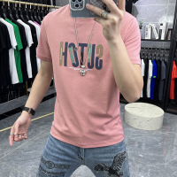 夏季新款短袖体恤男士潮流字母印花圆领半袖体恤上衣简约丝光棉t