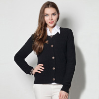 新款纯山羊绒衫百搭毛衣圆领麻花开衫黑色羊绒衫开衫黑色