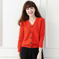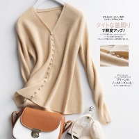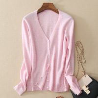 17羊绒衫女V领彩点毛衣女韩版针织打底衫单排扣开衫女山羊绒