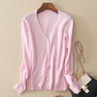 17新款V领彩点纱山羊绒开衫保暖女款针织衫时尚百搭外套毛衣
