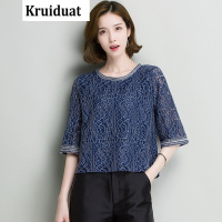 Kruidvat显瘦夏季2017新款中袖打底衫女五分袖蕾丝衫镂空M6
