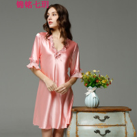 锦铭七玥夏季性感睡衣女士仿真丝睡裙诱惑情趣睡衣女五分袖丝绸厂