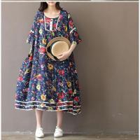 2016森女文艺复古民族风宽松大码女五分袖碎花色纯棉蝴蝶袖连衣裙