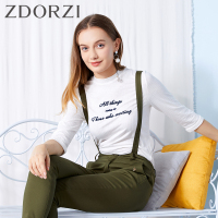 zdorzi卓多姿纯色绣花英文小立领五分袖上衣女634135