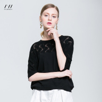 欧美潮人2018春夏新款女针织衫五分袖镂空上衣CYLL