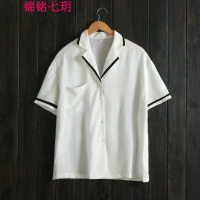 锦铭七玥叙就西装领天丝衬衫女五分袖 睡衣风宽松白衬衫女夏季新款