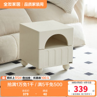全友家居奶油风床头柜实木脚抽屉式卧室置物收纳储物小柜子
