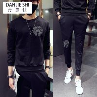 丹杰仕2016春季新款镶钻十字架套头衫男女情侣卫衣套装休闲外套大码卫衣男小咖秀百搭潮