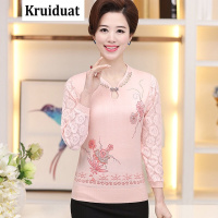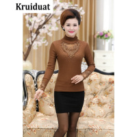 Kruidvat中老年人女装春季针织高领蕾丝镶钻打底衫2017妈妈装时尚新款Z041
