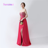 2017新款裹胸气质长款开叉惊艳礼服连衣裙长款开叉性感礼服枚红色