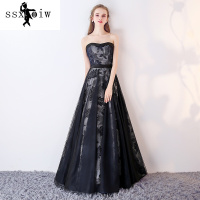 ssxoiw晚礼服2017新款藏青色长款显瘦修身抹胸宴会连衣裙伴娘礼服女藏青色