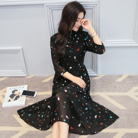 欧洲站2018春季新款雪纺连衣裙女印花内搭衬衫裙打底A字中裙女装