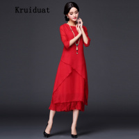 尊首新款雪纺连衣裙圆领高腰套头中长款显瘦修身2017年春季夏