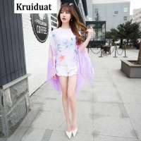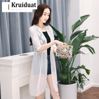 Kruidvat2017韩版夏季新款雪纺五分袖透视披肩中长款沙滩防晒衣