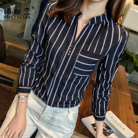 2017秋冬装新款雪纺衬衫女长袖韩范加绒加厚保暖条纹韩版打底衬衣