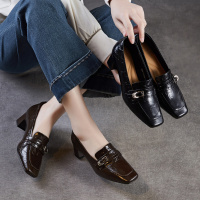 2026春新款手抓牛皮乐福鞋通勤轻奢女鞋方头粗跟单鞋皮带扣小皮鞋