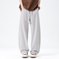 夏季薄款男士运动阔腿裤冰丝宽松垂感休闲裤抽绳腰百搭长裤子男