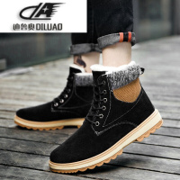 新款时尚马丁靴男士潮流皮靴复古工装鞋高帮加绒保暖靴子