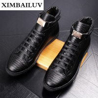 路蒙卡帝品牌欧美潮流鳄鱼纹皮靴男士高帮男靴韩版青年休闲鞋潮流内增高金色中帮短靴内增高皮鞋子
